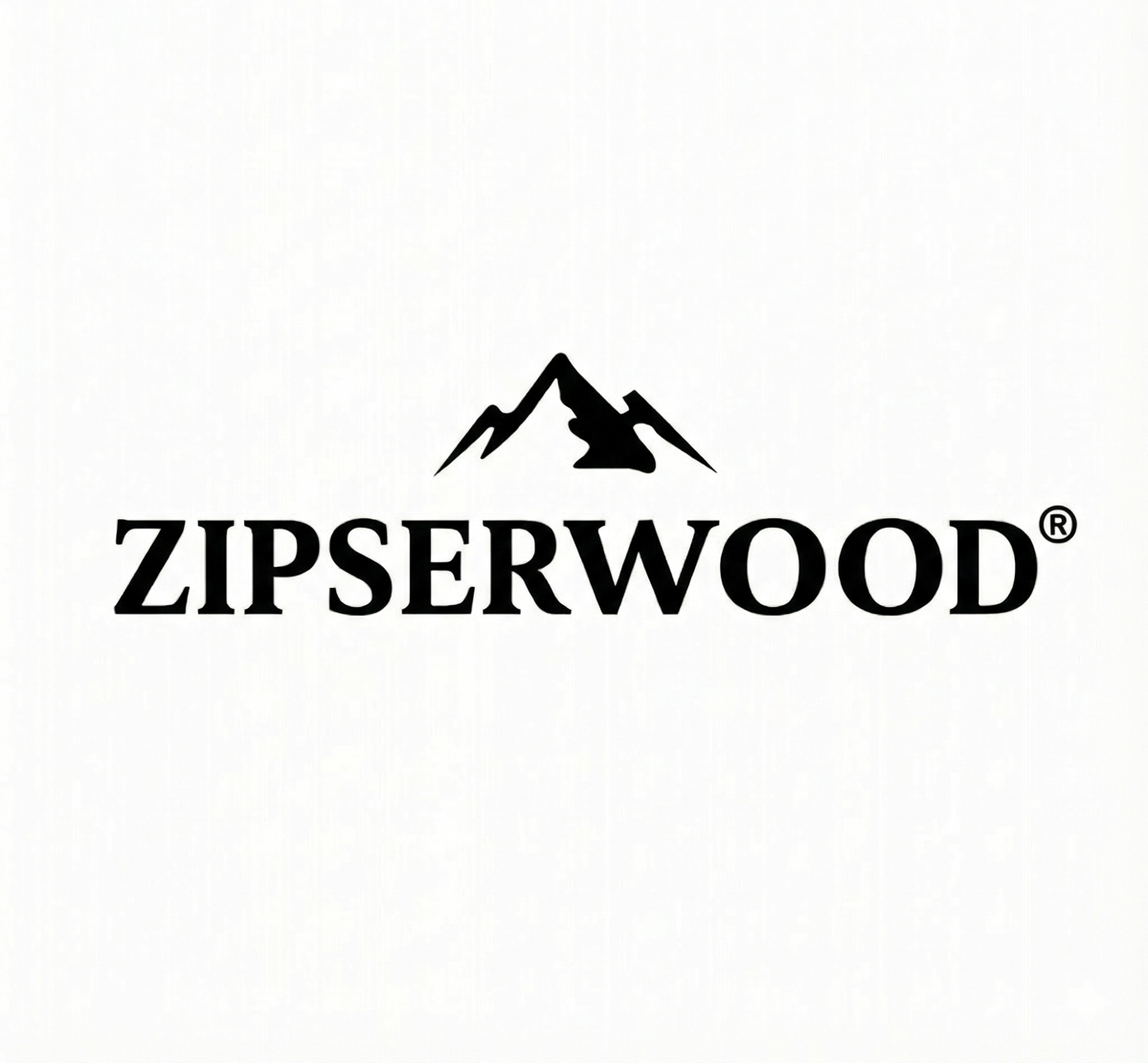 Logo ZIPSERWOOD reprezentuje prémiovú kvalitu, spojenie s prírodou a regionálnu hrdosť (Spiš). Vizuál kombinuje symbol hôr s pevnou typografiou, pričom farebnosť odkazuje na les (zelená) a drevo (hnedá).